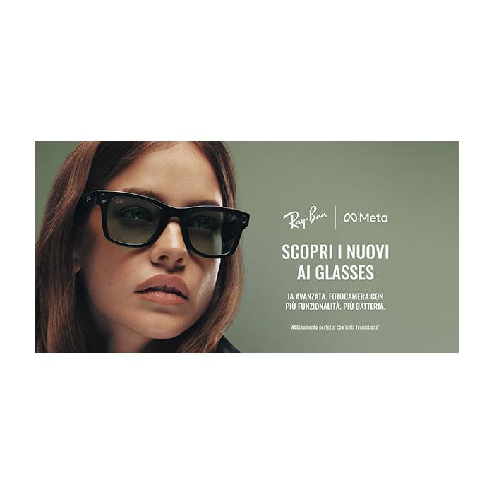 In un connubio tra l'iconico stile hollywoodiano e Meta AI, questi AI glasses ti consentono di reagire a quello che vedi, acquisire foto e video, ascoltare in movimento, fare chiamate e inviare messaggi senza toccare il telefono.